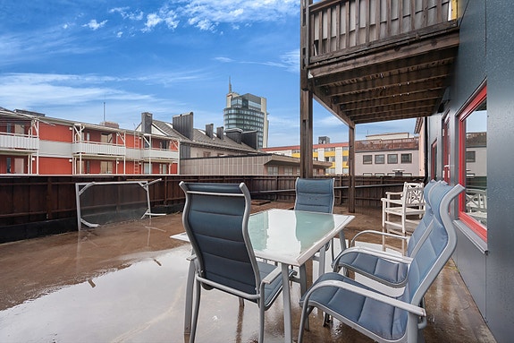 Flott andelsleilighet midt i Narvik Sentrum. Leiligheten har fine overflater, 2 soverom, og en stor felles altan i bakgården.